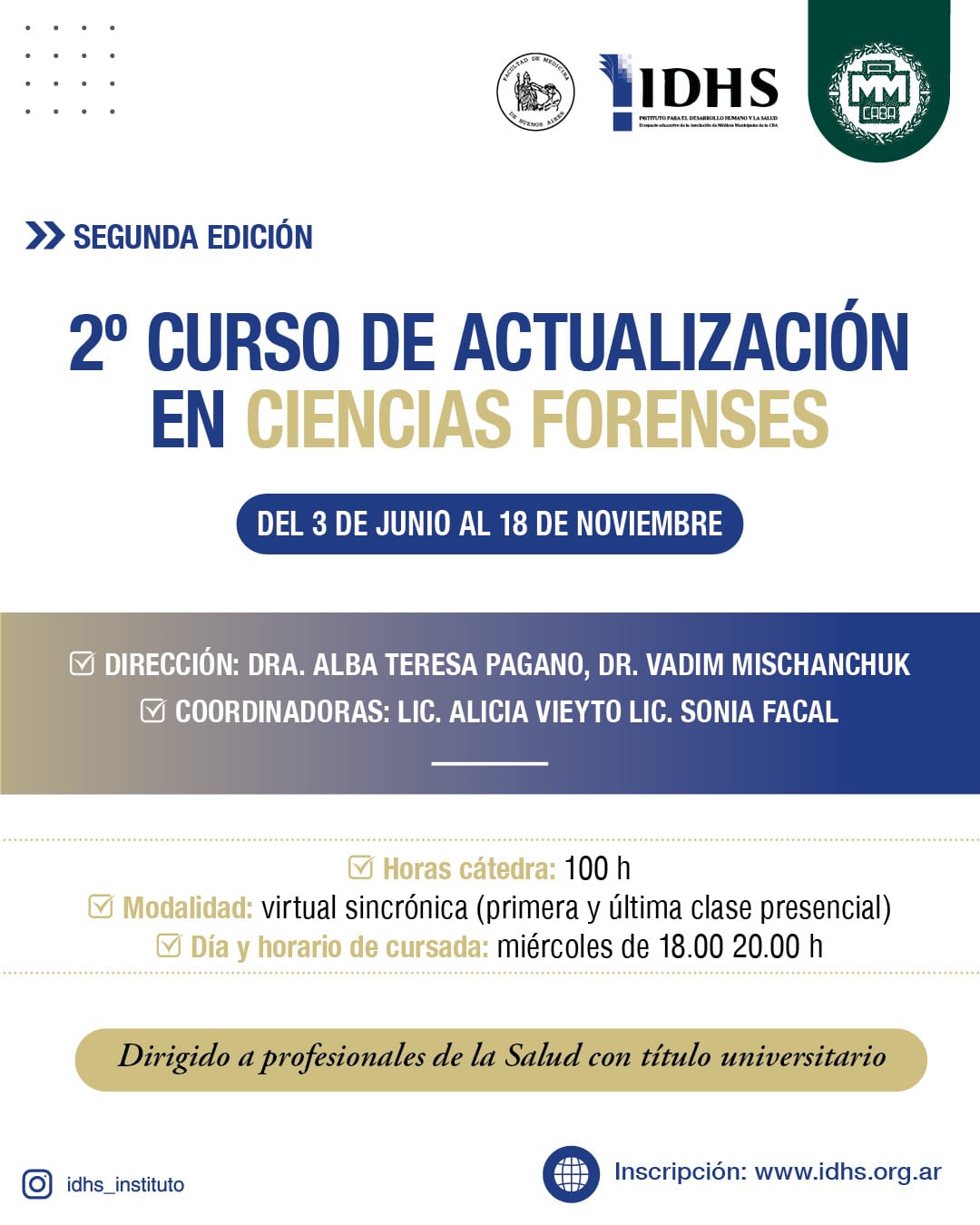 InscripciónDirigido a Profesionales de la Salud con título universitario